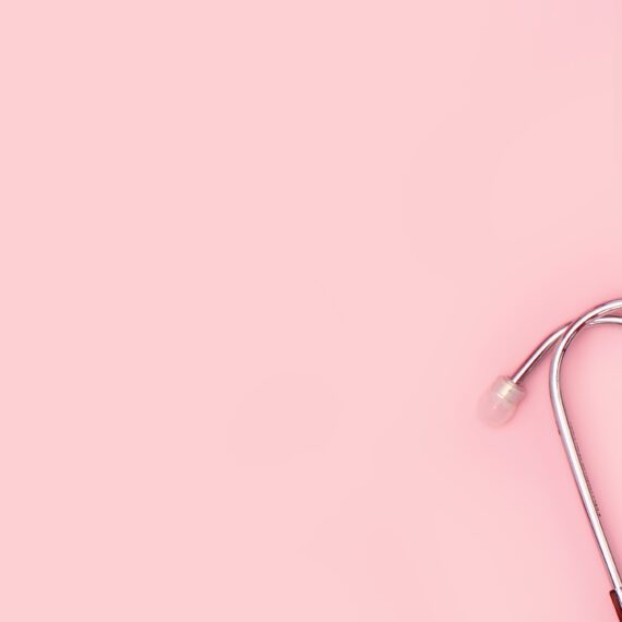 3d Red heart shape with line of cardio gram and stethoscope on pink background, banner and background for heart health, health care, health checkup concept